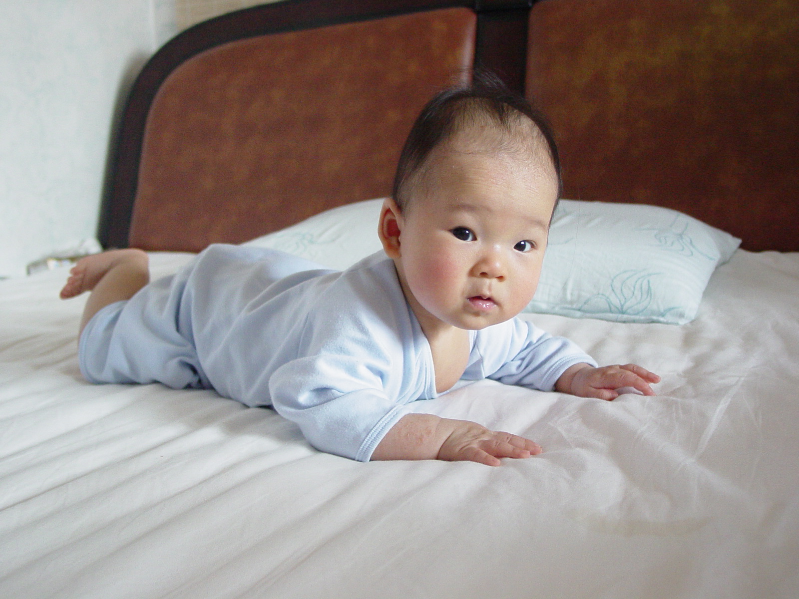 发表时间:2005-06-06 00:45:39第一组照片是清扬婉兮在100 天左右的时候拍的。那时节小家伙长满头的湿疹,天天都要用