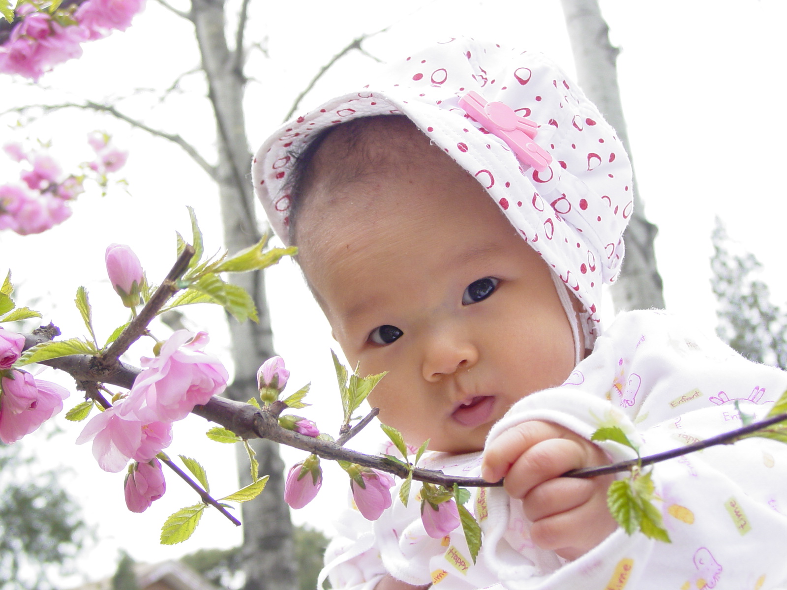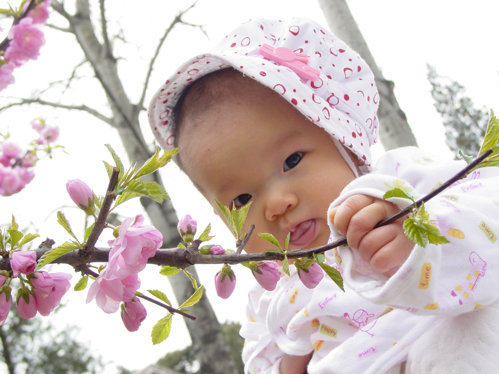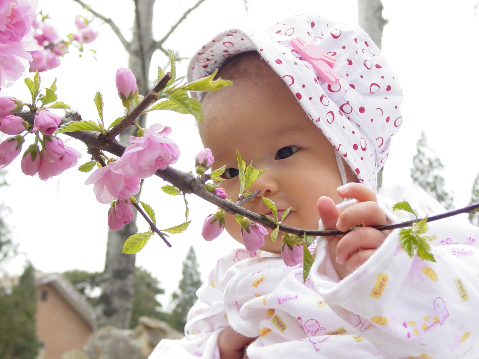 第二组照片是在清扬婉兮四个半月时候拍的。那时节桃花开得正旺,我们带她到荷塘那里去