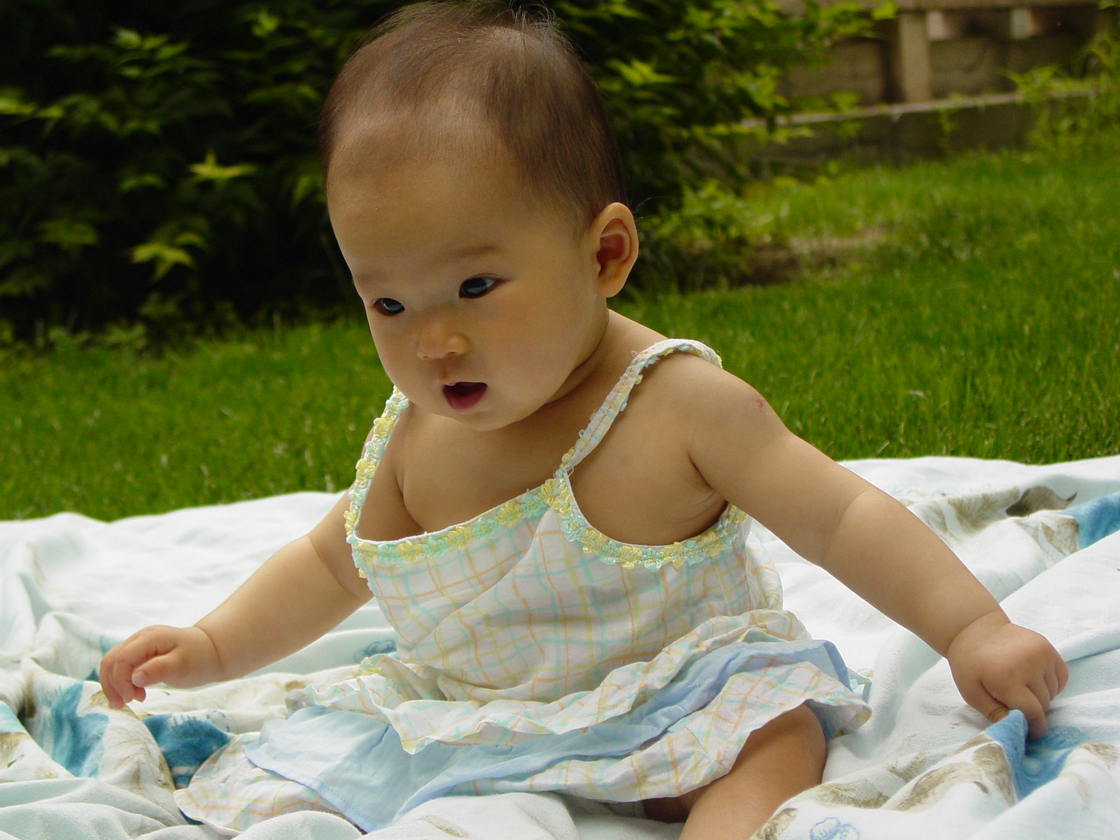 第三组照片是清扬婉兮半岁的时候拍的,在工字厅的前面。现在小朋友一个人就可以做得很