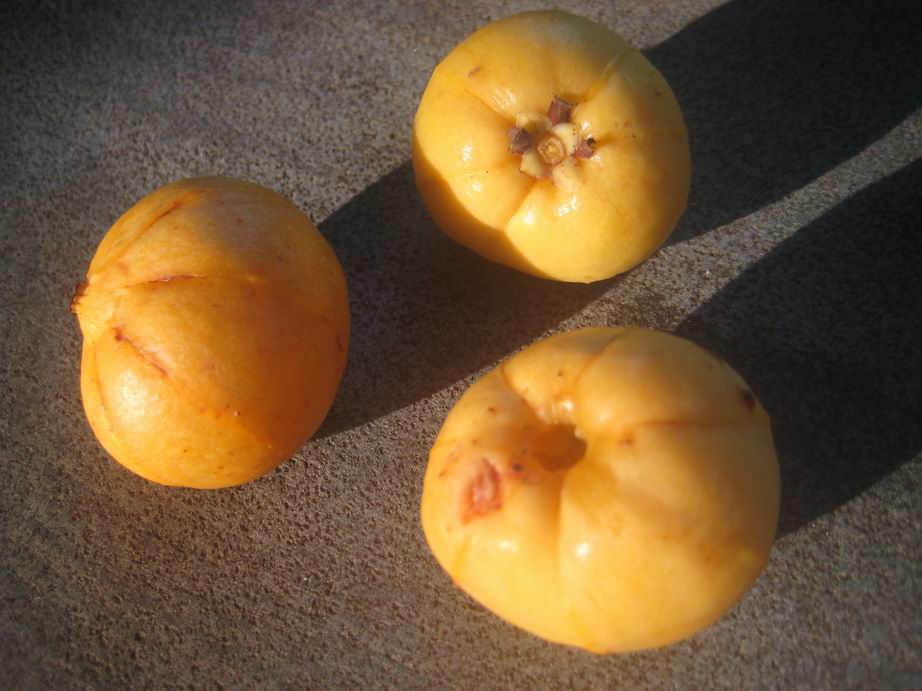 海南山竹,大乔木,树叶椭圆形,果实呈球形。果实尚未成熟时为嫩绿色,成熟后逐渐转为橙黄色。黄色果肉,酸里带甜,略有苦涩。一般来说,山竹需要树龄10年以上才能够开花结果。我们家里的山竹树是从2007年底从野外移植过来的老树,今年是移植之后第一次结果,大概有十多个的样子。