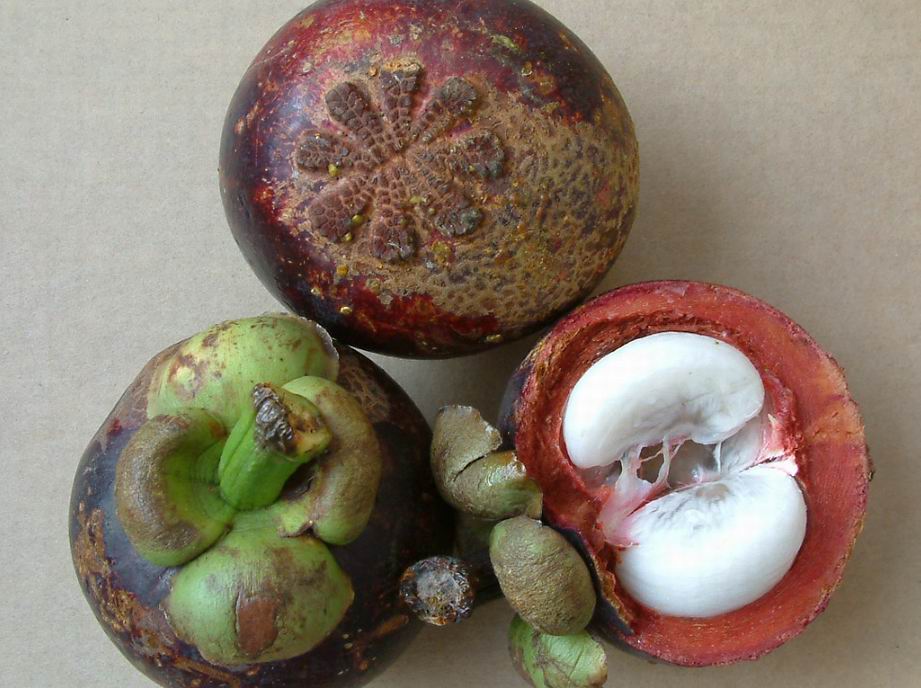 上图是市面上铺天盖地地卖的山竹,虽然号称是海南山竹,其实原产东南亚,只是最近才引种到海南的品种。这个果子的果皮较厚,呈黑褐色,白色果肉,甜中略带酸味。