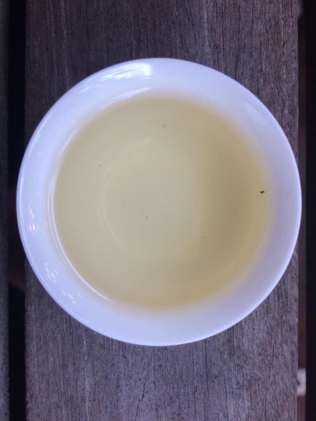 第二泡,水温大概为95度,即冲即出。清闻叶底,木香浓郁,花香转淡。茶汤清澈,颜色依然极浅,呈淡黄色,清闻无明显香味。入口微甜,不苦不涩。三五分钟后,口腔开始有舒张感,由舌底和两颊开始生津,进而蔓延至整个口腔。满口回甘,持久但是并不强烈。