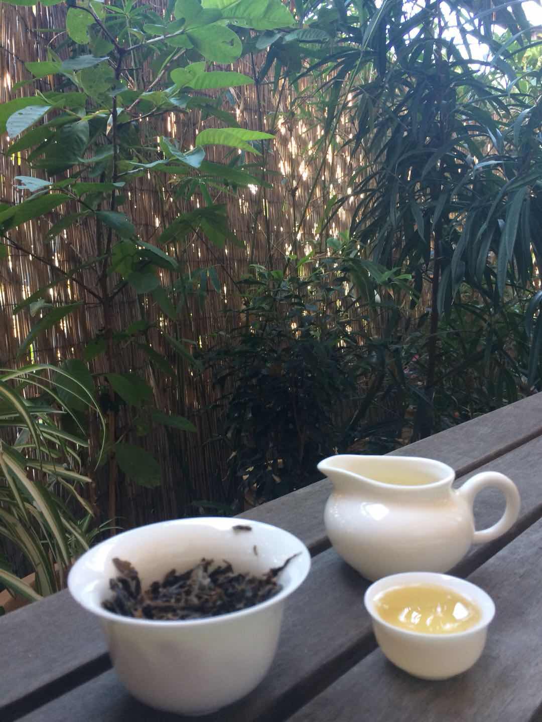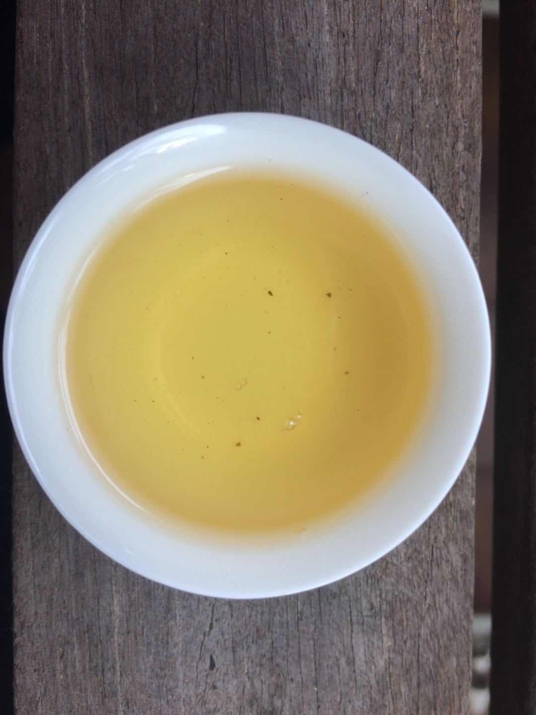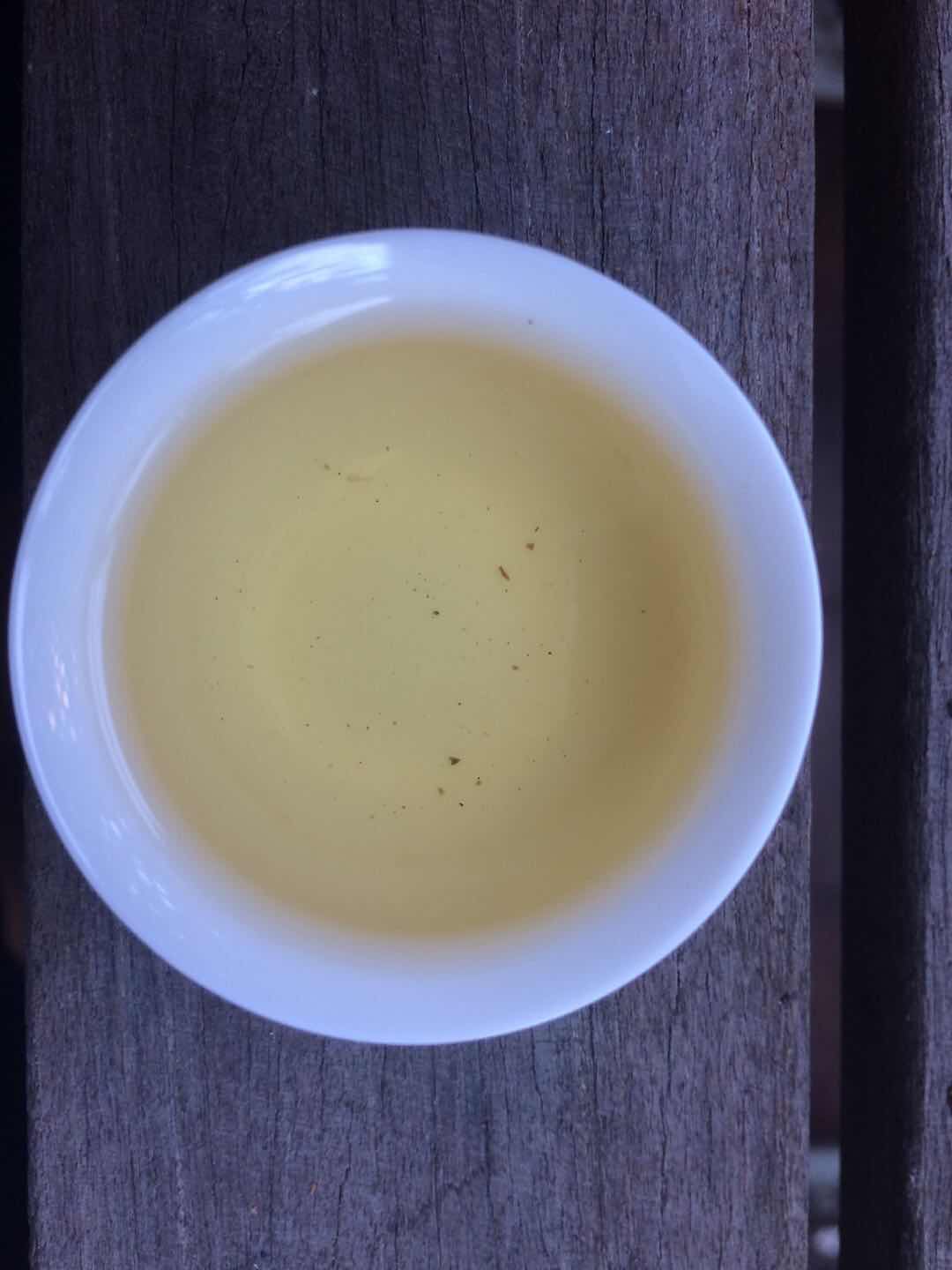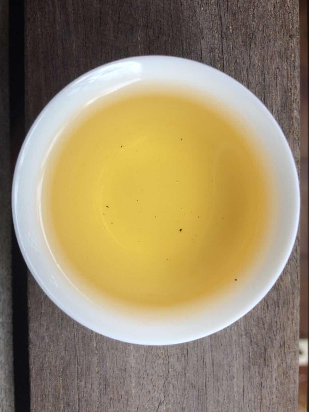 第一泡,水温大概为85度,即冲即出,主要的目的是醒茶。清闻叶底,木香浓郁,花香略显。茶汤清澈,颜色极浅,呈淡黄色,清闻有极轻微花香。入口微甜,不苦不涩,饮后无明显回甘。待茶汤冷后再饮,在清甜中有些许蜜香。