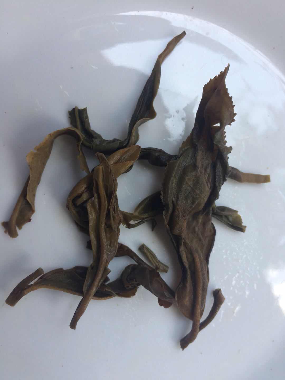 这七泡茶,大约喝了两个小时,饮后腹中有明显饥饿感。看一下叶底,有一些甚为肥壮粗大,也有一些稍微瘦小单薄,大概也是二春茶的特点吧。因为太饿,实在是喝不动了,便留到下午继续喝。如上图片,分别是第一、三、五、七泡的茶汤,拆下的干茶,以及泡过的叶底。